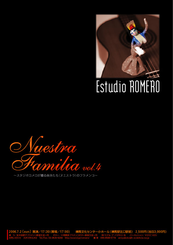 ・(踊り)鬼本由美、土井まさり、影山奈緒子、(歌)ミゲル・デ・バダホス、高橋綾、(ギター)金田豊、片桐勝彦