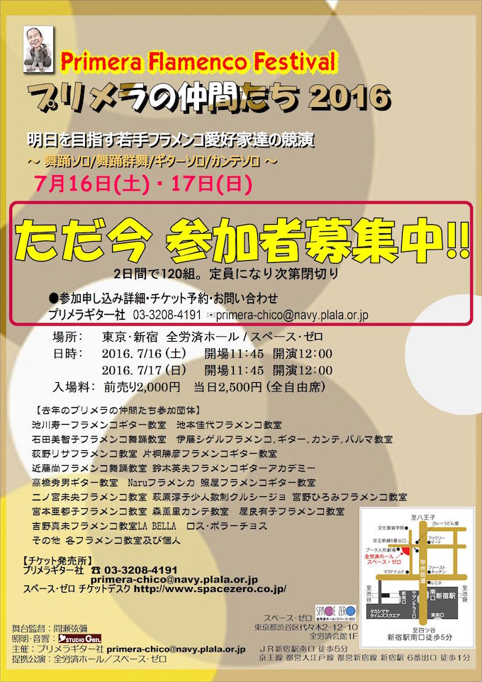 03-3383-0413(日本フラメンコ協会)、03-5340-5000(ZEROホール)