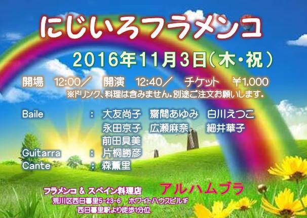 ■11月3日(木祝)西日暮里「アルハンブラ(にじいろフラメンコ)」 03-3806-5017(アルハンブラ)