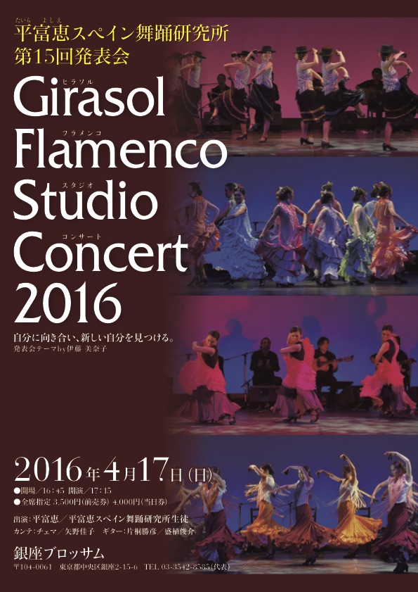 info@girasolflamenco.com(平富恵スペイン舞踊研所)、03-3542-8585(銀座ブロッサム)