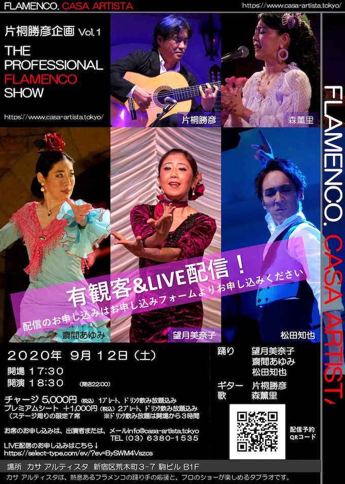 ■9月12日(土)四谷三丁目「カサ・アルティスタ」 03-6380-1535、info@casa-artista.tokyo