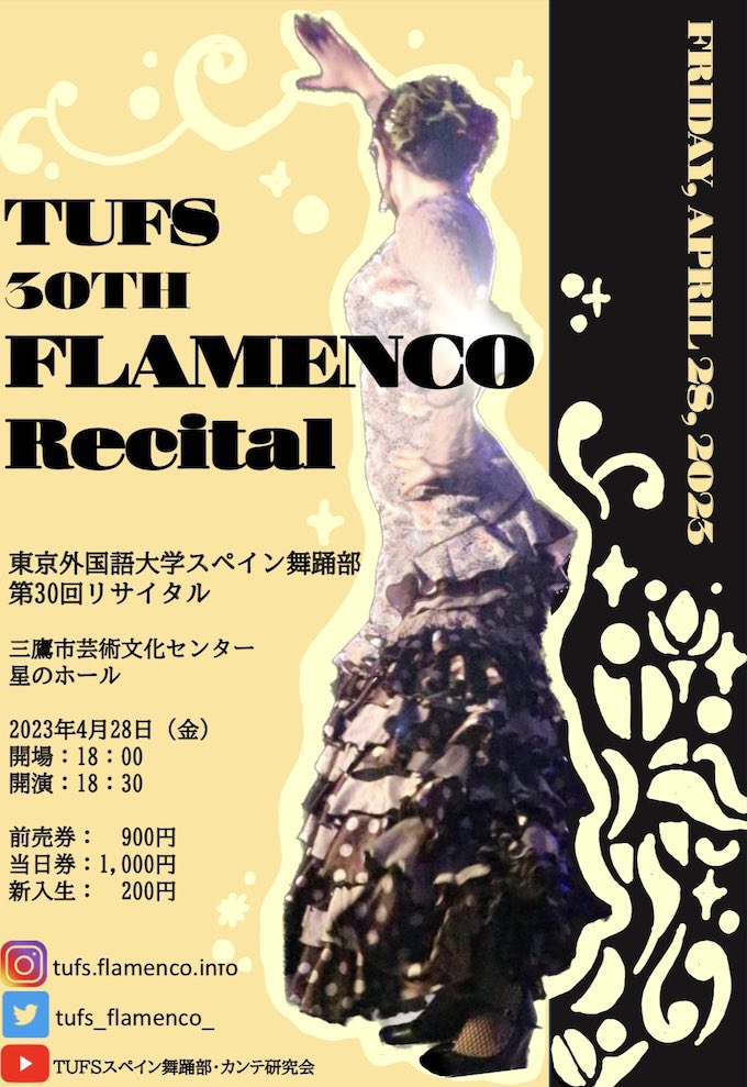 ■4月28日(金)三鷹市「芸術文化センター(東京外語大スペイン舞踊部・カンテ研究会リサイタル)」