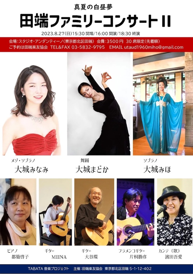 (ソプラノ)大城みほ、(踊り)大城まどか、(メゾソプラノ)大城みなみ、(ギター)MIINA、大谷環
