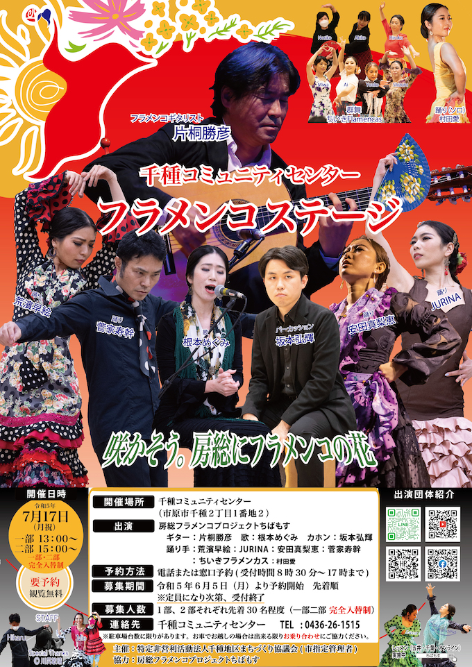 (踊り)教室生徒一同、花原千枝美、(歌)Miguel de Badajoz、(ギター)片桐勝彦 、柳田裕輔