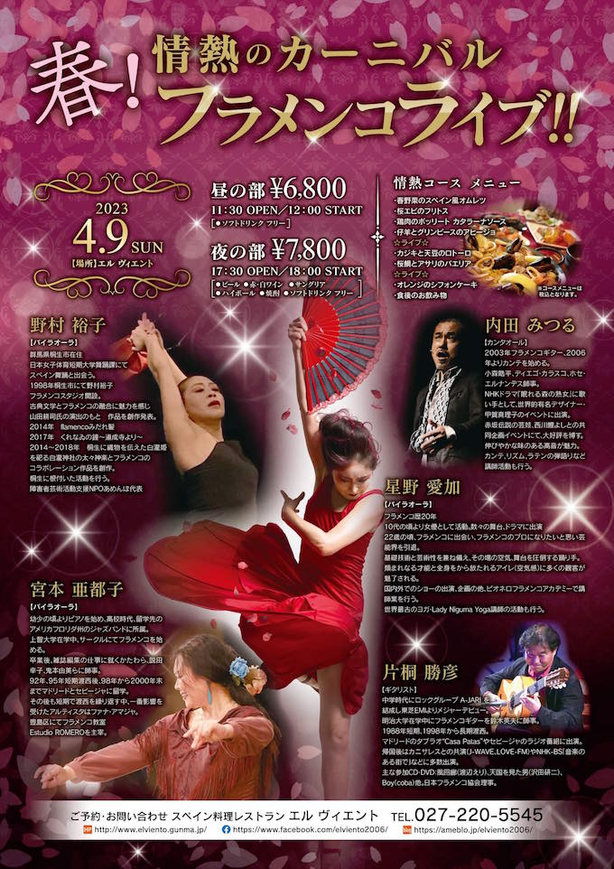 ■4月9日(日)群馬県・前橋「エル ヴィエント」 027-220-5545