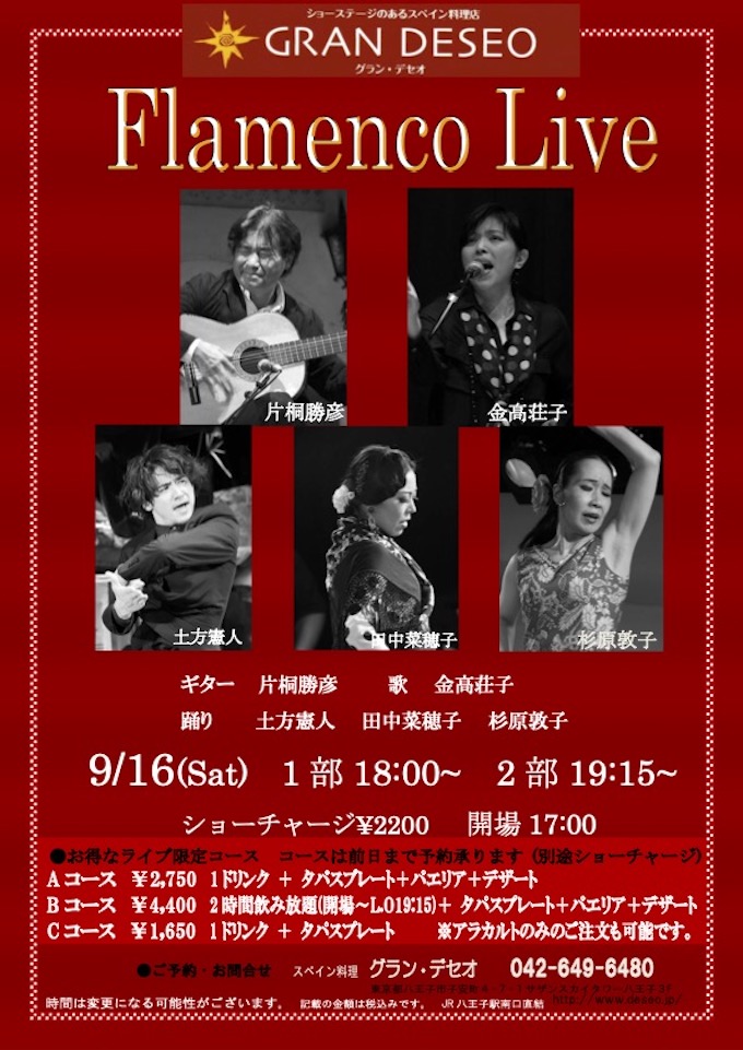 ■9月16日(土)八王子「GRAN DESEO(Flamenco Live)」