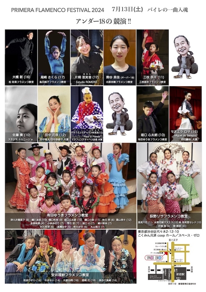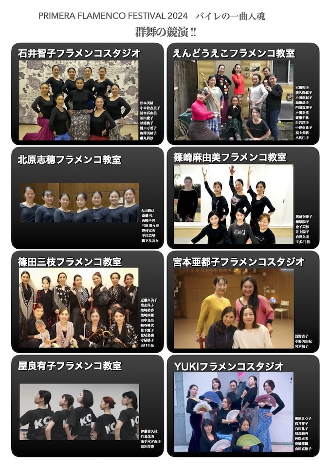 小島章司フラメンコ塾、Feliz、地紙直美、野崎千恵、むぎコジマフラメンココリウス、他多数