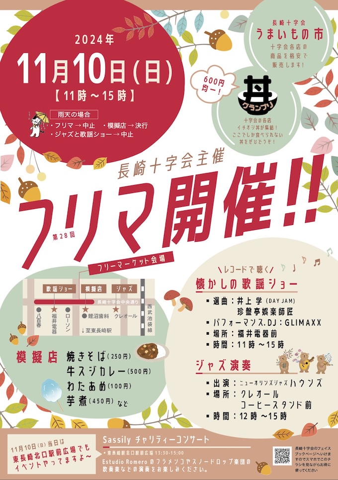 ■11月10日(日)東長崎「東長崎駅前広場(チャリティーコンサート)」03-3530-5272(ロメロ)